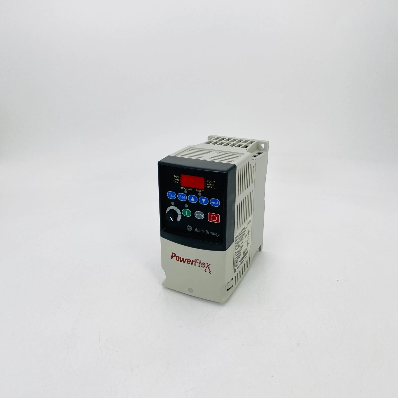 The 22A-B8P0N104 is a PowerFlex 4 series AC drive from Allen-Bradley (Rockwell Automation) -1-7. Designed for three-phase 200-240V power systems, it controls motors up to 2 kW with a rated output current of 8 A -7. This compact drive features V/F control -7, an integrated keypad for operation -1-7, and built-in RS-485 communication -1-7. It's a space-saving and economical choice for basic speed control in applications like fans, pumps, and conveyors -7.