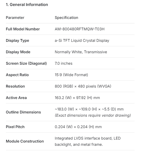AM-800480RFTMQW-T03H AMPIRE 7" TFT-LCD screen 800*480 Display