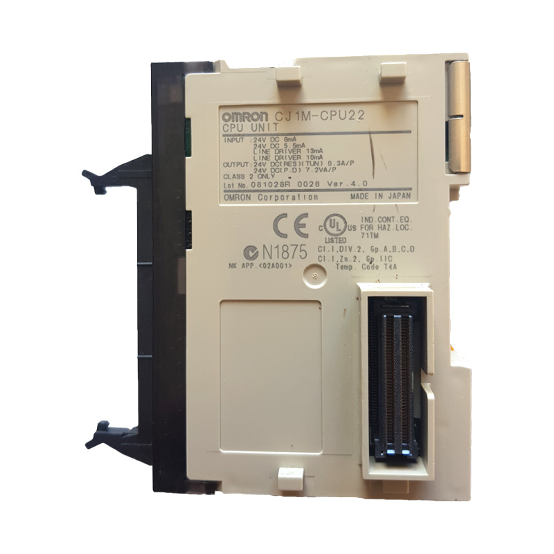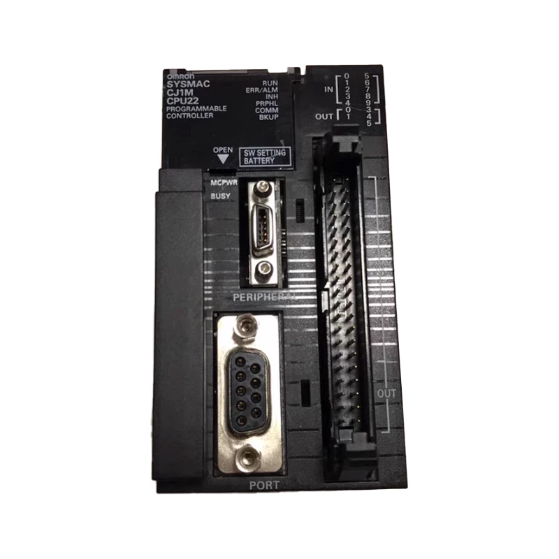 CJ1M-CPU22 is a CPU unit in Omron's CJ1M series PLC. It is an application-oriented compact controller with integrated built-in pulse I/O function. It has a built-in pulse input/output function and supports two-axis 100kHz pulse input and output, which can achieve high-precision positioning control.