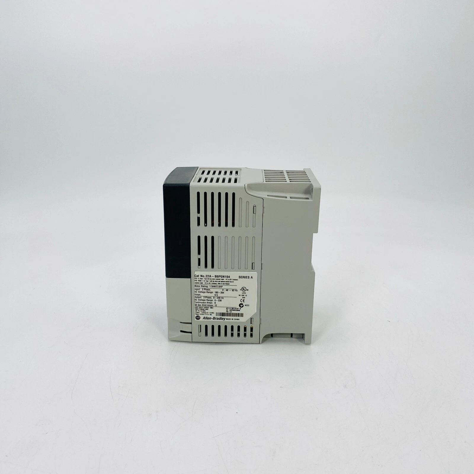 The 22A-B8PON104 is a PowerFlex 4 series AC drive from Allen-Bradley (Rockwell Automation) . This compact variable frequency drive is designed for three-phase 200-240V power systems . It's rated for 2 kW motor power with an output current of 8 A, suitable for applications like fans, pumps, and conve