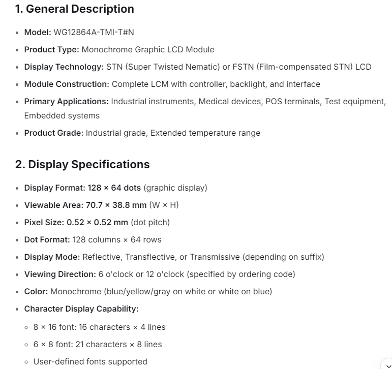 WG12864A-TMI-T#N brand new original LCD screen